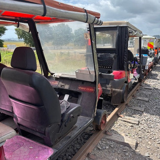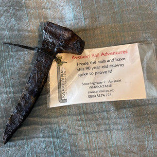 Many of us took a Golf Cart Ride along a piece of New Zealand's rail history. Our ride was in cleverly adapted Golf Carts which were self-driven along rail tracks. We were in a 4 seater Golf Cart. Our "driver" had a Go foot pedal, a brake pedal, and an on-off key. Yes, there was a steering wheel but it was simply a toy. I was our designated "navigator". I held the 2-way radio and communicated with our Tour Leader/Guide. Since we were in the last car of our 10 car Train, my job was to say "Roger" whenever the Leader asked if we were doing OK back there. One time I did respond "Sorry, we are catching up after we stopped at the Saloon". Since all Carts had their own Radio, I heard a lot of chuckling. Our 3rd team member was in charge of Photography since neither the Driver nor the Navigator could focus on picture taking. The scenery was beautiful. We stopped along the way to visit the Gumboot Fence. There were several hundred boots nailed to the fence. We stopped for lunch and were provided a true Kiwi box lunch of Meat Pies and fruit. Alas, only juice to drink. We also discovered that Putin had stopped by the latrine. I was the only member of our 40 person group who was honored with a gift at the end of the trip - An honest to goodness Rail Road Spike. Tag reads "I rode the rails and I have this 90 year old railroad spike to prove it". Our Tour Guide/Leader Owner of Awakeri Rail Adventures was a 30 year retired policeman who was a fun flirt. I may have a boyfriend in NZ when I return in 3.5 years.