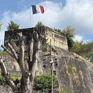 After finally leaving Brazil, we headed to Devils Island in French Guiana. This place has an interesting history! It was a French Penal Colony from 1852 to 1952. It had a notorious reputation filled with shocking details, political intrigue and larger than life characters. So, naturally, we were excited to visit the island. We were to go ashore using small local boats IF weather permitted. Well, guess what? The locals said their boats were to small to come along our ship in the 20+ winds and high surf. So, we circled the island looking for sharks (part of the mystery/local lore about why there was no cemetery on the island) and saw none. And so we travelled on to another French Island - Martinique.