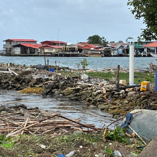 And now we arrive in Panama. We have two stops in Panama before we start through the canal on April 25. First stop is the San Blas Islands, and specifically Carti Island. Had a passport check before we could go to the island. We even had the Panamanian Customs office send out 4 Customs officers to do a Face-to-Face passport check. I have heard about these islands and the beautiful hand sewn jewelry and textile art and handicraft work that is done by the Kuna Indians. The 365 San Blas Islands (only 49 are inhabited) indigenous people were moved to the mainland in the early 2000's but 200 families remained. They are a poor tribe but the children & adults were always smiling. The money they make from selling their Molas and other goods are consolidated into one and that is what supports the entire community. I did read that the Kuna women rule the home and the community. The newly married husband moves into the wife's family home and assumes her last name. There were Molas that were made for the tourists - they were usually shades of one color, very simple and the stitching on the back was loose and large. $25.00-$50.00 The really good ones were intricate, colorful with tiny stitches. They were $500. The one that I bought (pictured) was above $50 but less than $500. I was so disappointed when I saw some of our residents negotiating for a lower price for even a $15.00 item. We are living a wonderful life and these people are trying to live in a world that barely knows they exist.