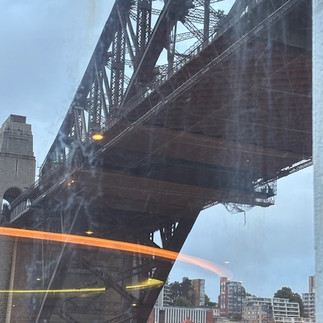 From Brisbane to Sydney it was a quick flight and we decided to spend 2 extra days in town before the Odyssey arrived. I was able to connect with two of my former Texas Instruments workmates and it was fun catching up. We had a couple of great dinners, and took several tours - Hop On-Hop Off Bus, Harbour Boat trip over to Bondi Beach and attended a performance at the Opera House. The walk around the Rocks area is always fun especially when you find Sydney's Oldest Pub and have a Tinnie. Kay, do you recognize the sign for Macelleria (that is the steakhouse on Bondi where they cook your steak while you wait? It has outdoor seating now but beef was still awesome). We also stopped at the Memorial site of the killing of 16 Jewish people celebrating Hanukkah in December 2025 on Bondi Beach. It was very sobering. Over 120 of our Residents attended one of two performances at the Opera House on our last night in Sydney. Half saw the Opera Hansel & Gretel and the rest of us saw the Cabaret production of Gatsby. The group picture is an AI generated picture of our original Gatsby group picture (I was farther to the right). The next morning we sailed under the Sydney Bridge for the last time. What a beautiful sight to see.